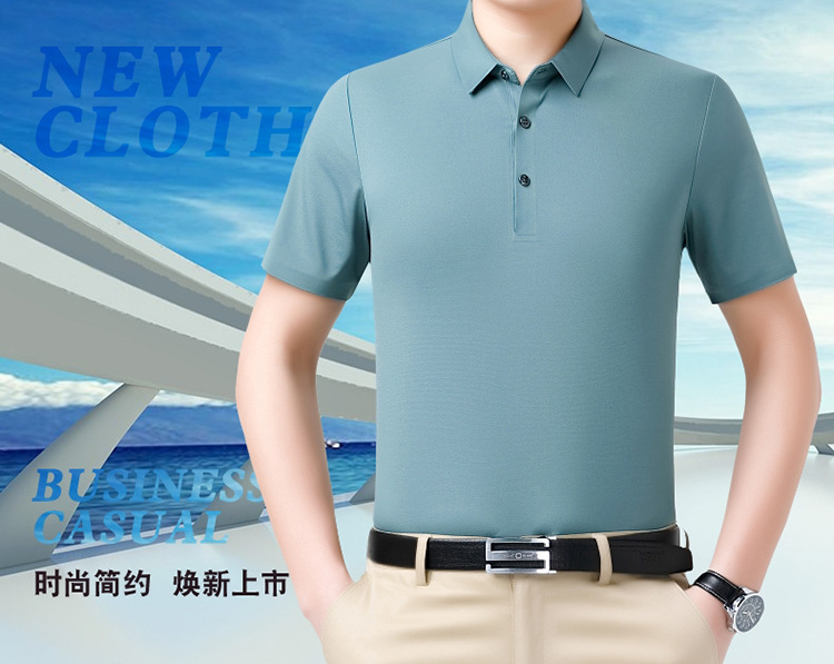 高品質短袖POLO衫奢華中年男士商務簡約夏季上衣大牌桑蠶絲T恤潮