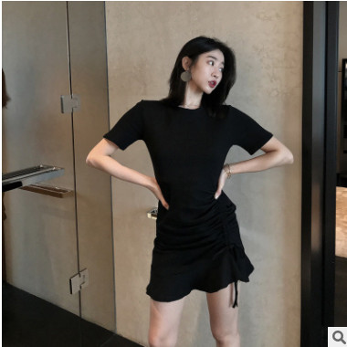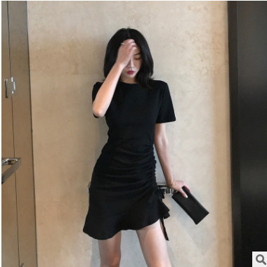 黑色連衣裙女2019春裝新款裙子氣質修身魚尾裙包臀小黑裙夏可代發