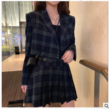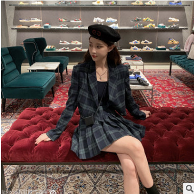2019新品定制 顯白時髦又少女 打破常規格子西裝套裝短裙韓版氣質