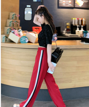 運動休閑闊腿褲女2019新款春夏垂墜感直筒寬松顯瘦高腰拖地長褲潮