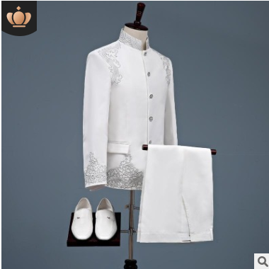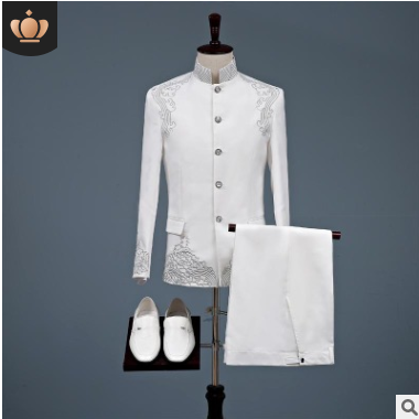 中國(guó)風(fēng)繡花中山裝男士表演禮服舞臺(tái)大合唱主持人民族演出西服套裝