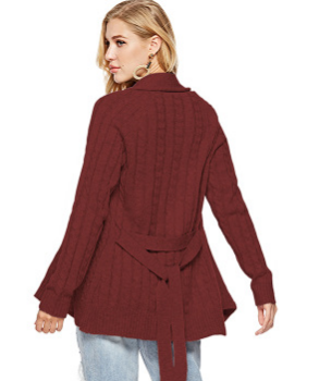 亞馬遜爆款2018秋冬新品長袖針織開衫歐美大碼女式毛衣外套