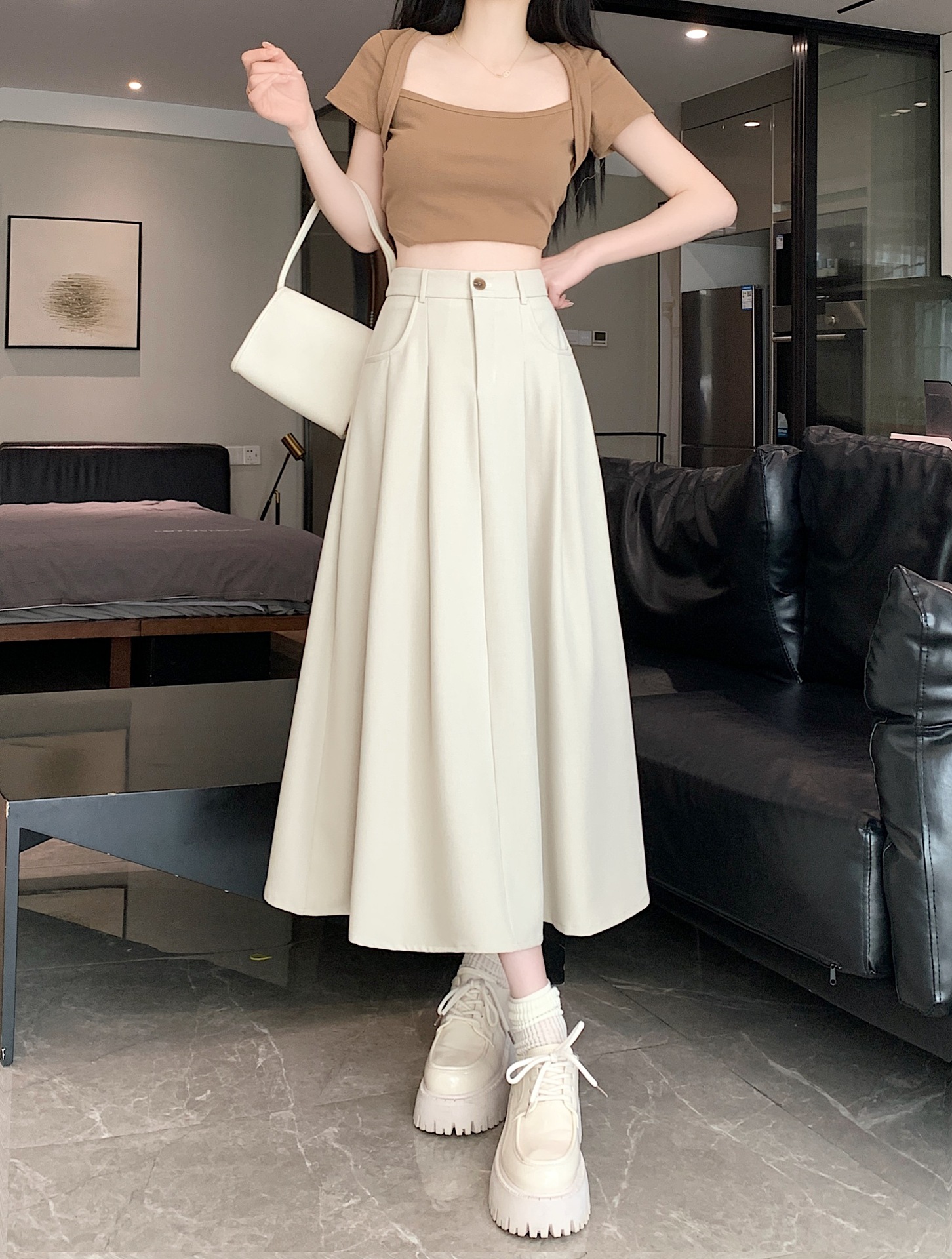 垂感西裝面料半身裙女裝春秋新款休閑A字裙高腰顯瘦學生韓版長裙