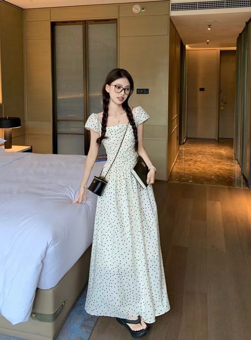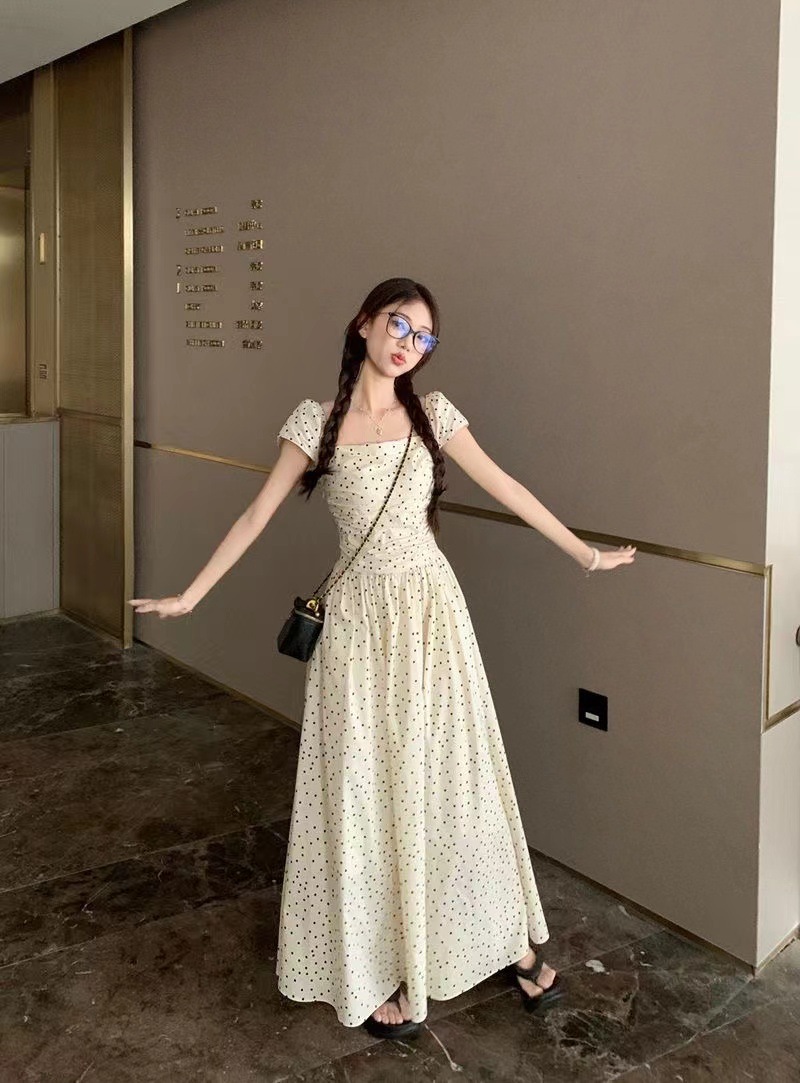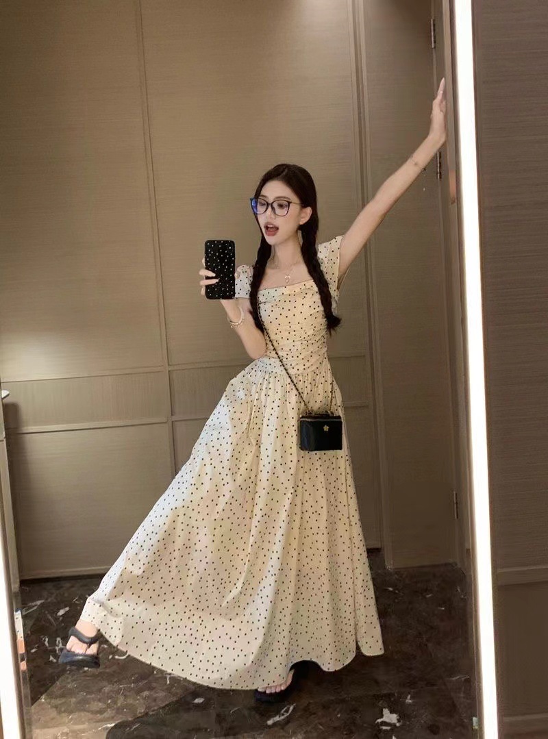首頁 > 供應產(chǎn)品 > 【有內里+打攬】法式波點泡泡短袖連衣裙女夏季方領收腰學生長裙