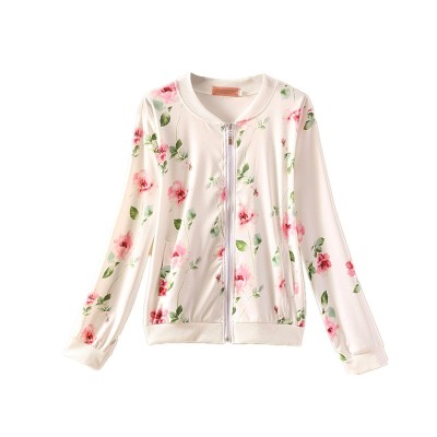 雪紡薄款空調防曬衣外套女裝韓版長袖拉鏈棒球服印花寬松短款外套