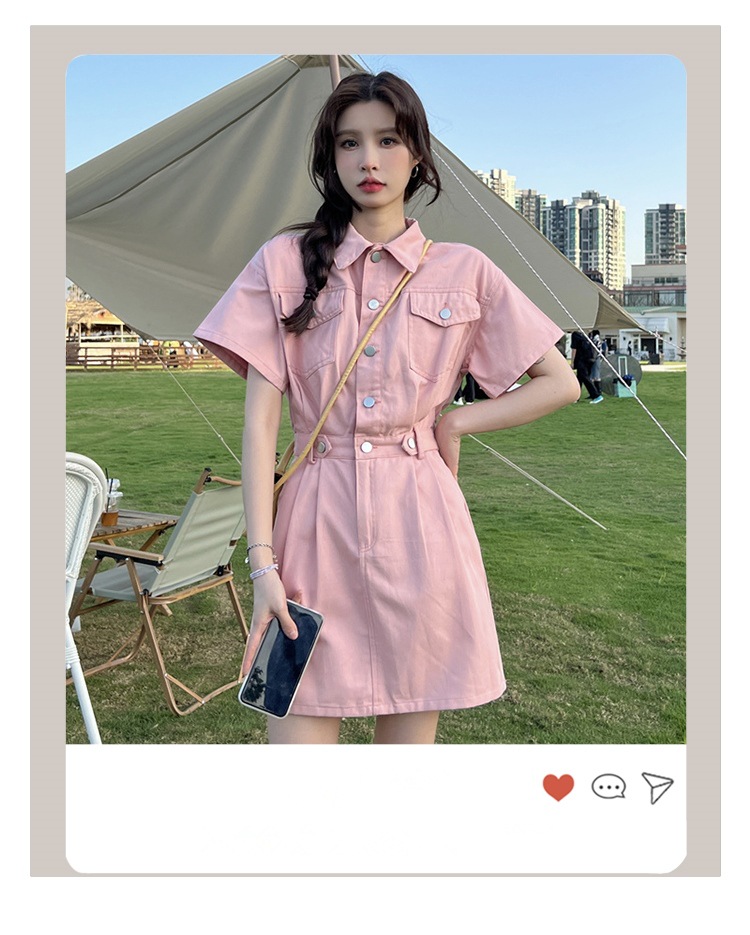 前后口袋+拉鏈設計 2025網紅新款短袖連衣裙女學生日系polo領短裙