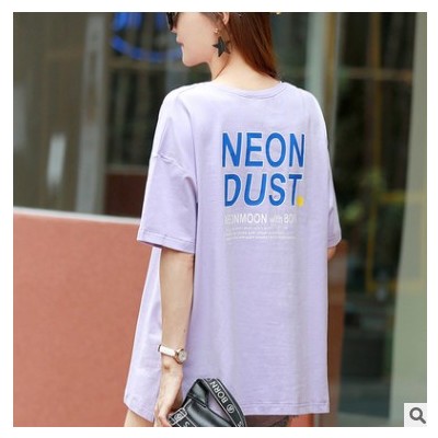2020夏款棉淺紫色韓版寬松大碼中長款t恤女裝地攤貨批發