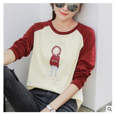 長袖女2020新款秋季寬松韓版印花卡通時尚打底衫女裝t恤
