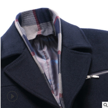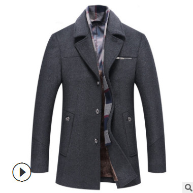 秋冬新款男式毛呢大衣時尚圍巾羊毛呢大衣男加絨加厚呢子外套批發(fā)