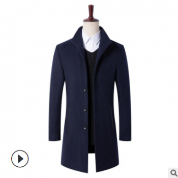 2019新款韓版時尚男式毛呢大衣休閑羊毛男士風衣抗皺呢子大衣外套