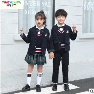 2019新款兒童班服英倫風小學生校服三件套西裝幼兒園園服批發定制