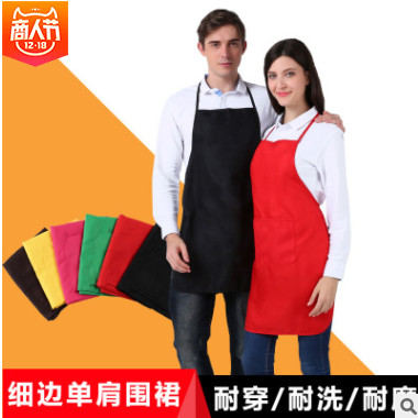 外貿四季通用純色圍裙抗污細邊口袋單肩圍裙來圖定制印花刺繡批發