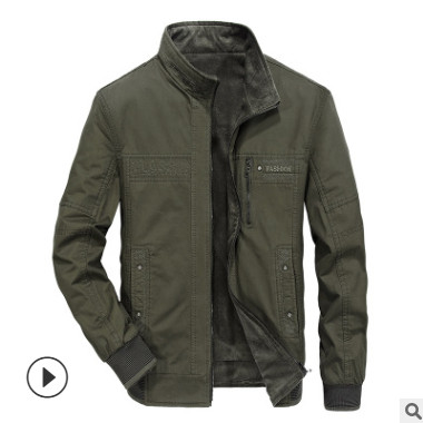 春秋新款男式夾克爸爸裝中年純棉男士雙面穿茄克立領休閑外套男裝