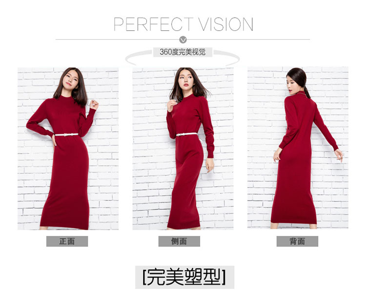 歐美超長款過膝長袖針織毛衣連衣裙女秋冬半高領羊絨修身打底長裙