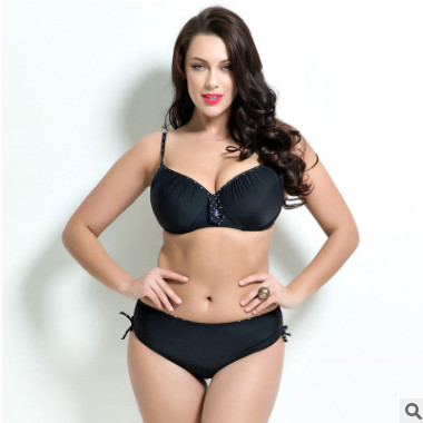 ebay外貿女士泳衣速賣通性感歐美分體聚攏高腰純色加肥加大碼泳裝