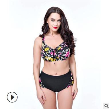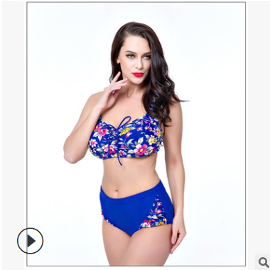 19新款歐美大碼分體泳衣女外貿高腰性感碎花比基尼大小胸聚攏泳裝