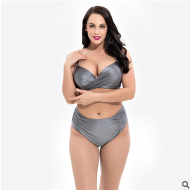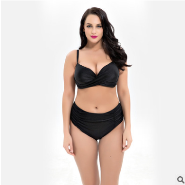 2019新款歐美大碼鋼托比基尼女泳衣性感純色系帶露背高腰一件代發
