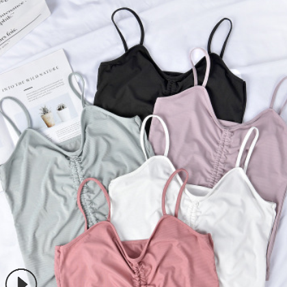 吊帶背心女夏季新款女裝莫代爾T恤百搭設(shè)計(jì)感抽繩V領(lǐng)上衣修身
