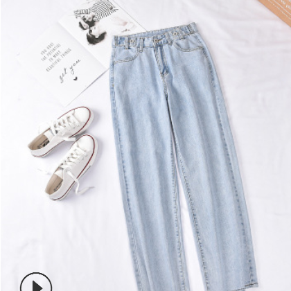 2020夏季薄款直筒寬松高腰闊腿牛仔褲女小個(gè)子泫雅垂感拖地牛仔褲