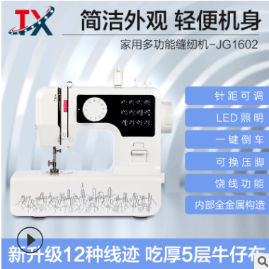 廠家直銷1602縫紉機(jī)吃厚鎖扣眼鎖邊迷你電動(dòng)多功能小型家用縫紉機(jī)
