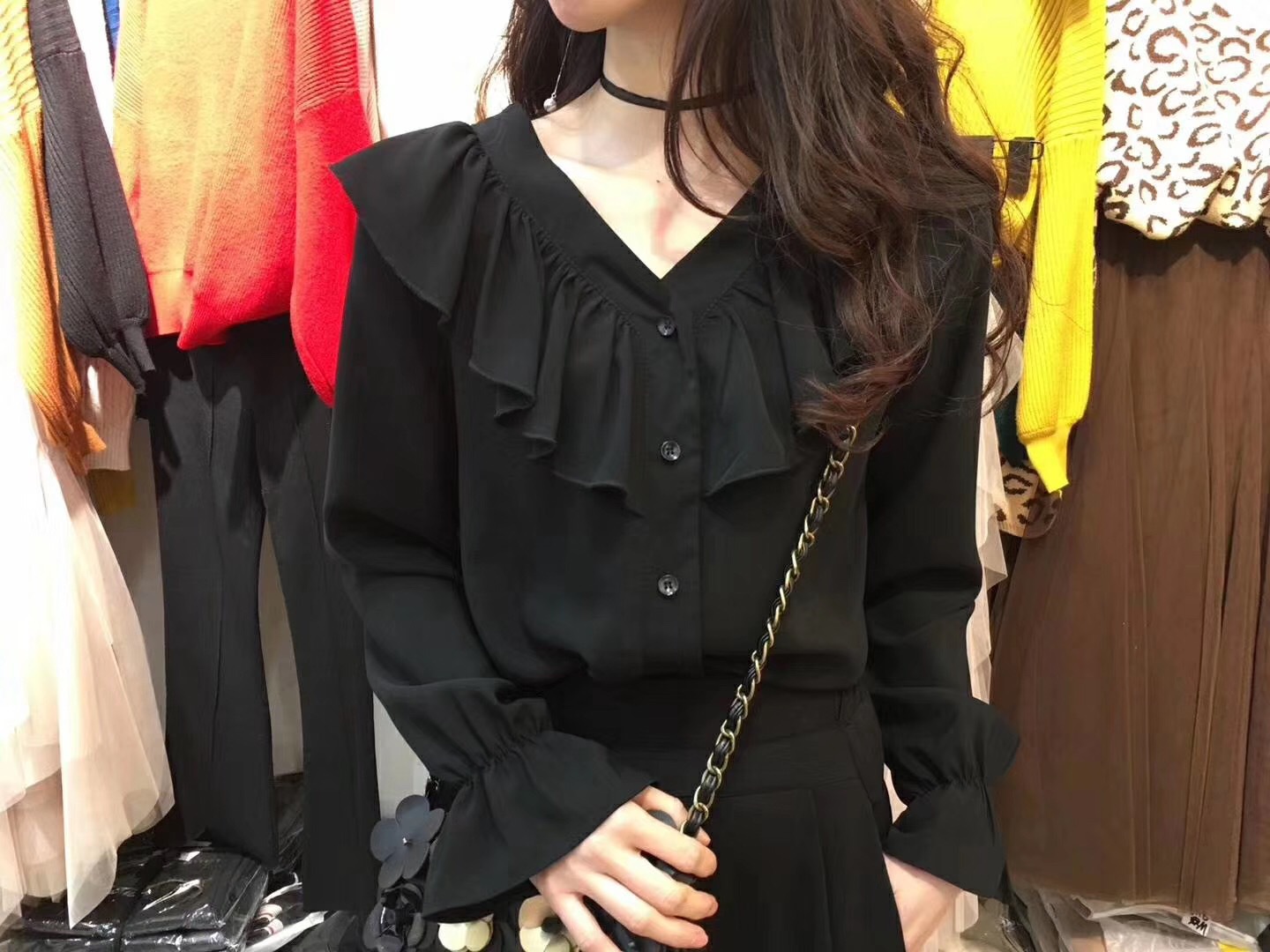 產(chǎn)品: 瀏覽次數(shù):1212021春秋季新款韓版通勤遮肚子雪紡洋氣荷葉邊超仙V領(lǐng)喇叭袖襯衫