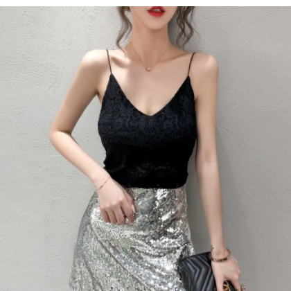 2020新款性感V領蕾絲顯瘦內搭吊帶很仙背心女外穿無袖上衣女夏裝