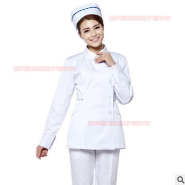 廠家定制偏襟底上領(lǐng)護士服白色長袖分體套裝女工作服美容服紋繡