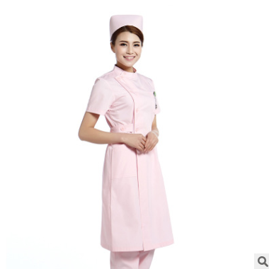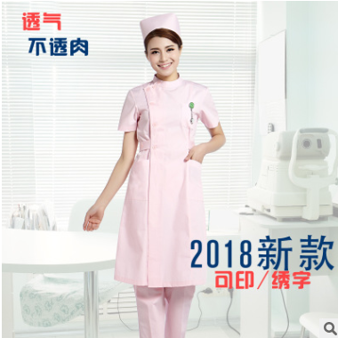 護(hù)士服短袖女粉色白大褂夏季修身學(xué)生醫(yī)院工作服導(dǎo)醫(yī)藥房紋繡美容