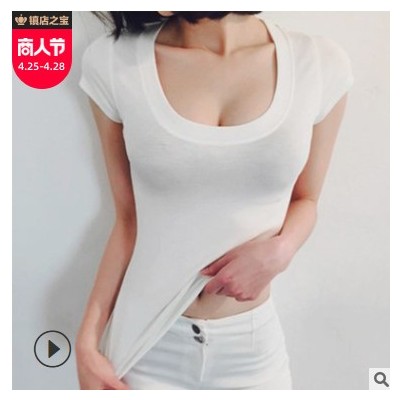 女裝T恤上衣春夏新款2021純色簡約修身韓版打底衫短袖t恤女衣服女