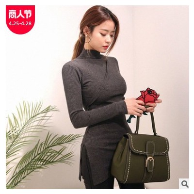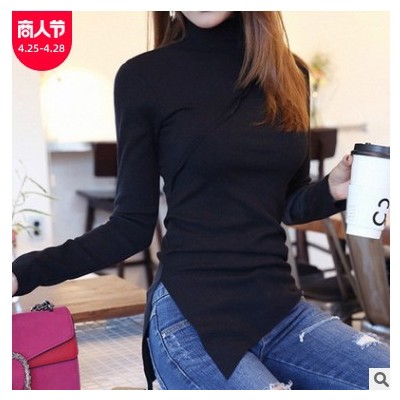 打底衫女春季新款2021韓版純色半高領打底衫 長袖衣服打底t恤衫女