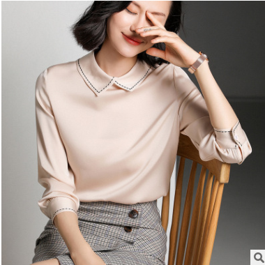 2019夏季新款女裝19歐姆重磅真絲襯衫女桑蠶絲純色簡約長袖上衣