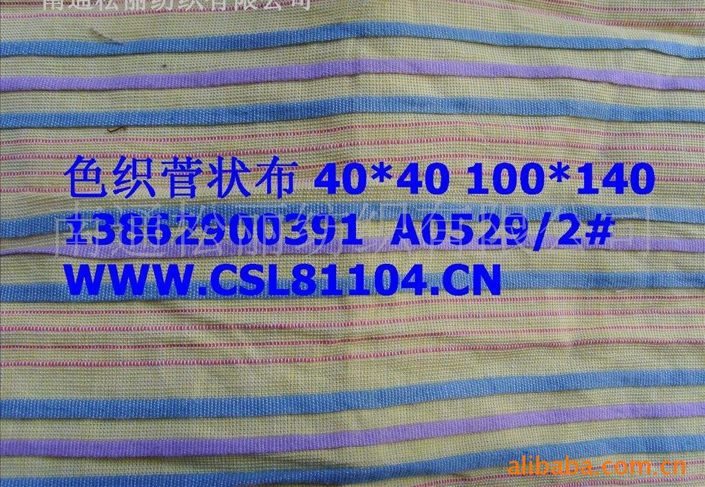 南通松麗紡織有限公司 本司專業(yè)生產各種外銷全棉色織.交織.提花.剪花.泡泡紗.彈力泡泡.大小提花.府綢.牛津紡.牛仔布.全棉彈力.棉錦彈力.棉滌彈力.金銀絲交織布.棉絲交織布.雪呢爾亮絲彈力布.麻棉交織布.星羽縐.楊柳縐.青年布.雙層布.菅狀布.(折疊布)絞綜布.(紗羅布)及曲線布.大肚緞染.竹節(jié)布等中**服飾面料.全部以來樣定織各種時裝面料及床上用品.質量保證.交貨及時.價格合理.歡迎來人來函洽談業(yè)務.//中國色織.com