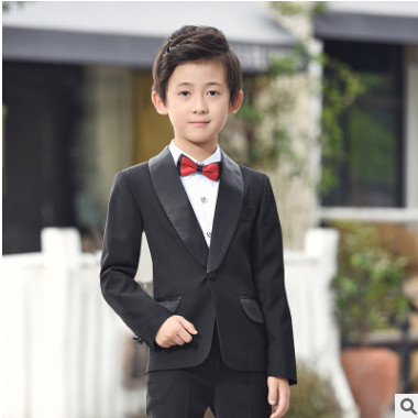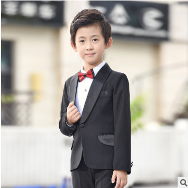 男童禮服馬甲套裝男孩花童主持人兒童表演西裝黑色長袖演出小西服