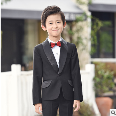 男童禮服馬甲套裝男孩花童主持人兒童表演西裝黑色長袖演出小西服