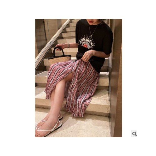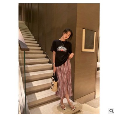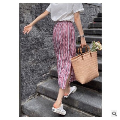 SZE STU格子半身裙女夏季2021新款百搭顯瘦開(kāi)叉a字長(zhǎng)裙高腰百褶裙