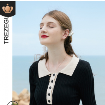 2021春季新款韓國東大門女裝翻領修身淑女顯瘦條紋針織連衣裙8029