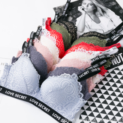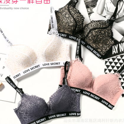 新品少女字母性感蕾絲無痕舒適內(nèi)衣聚攏無鋼圈調(diào)整型文胸罩套裝