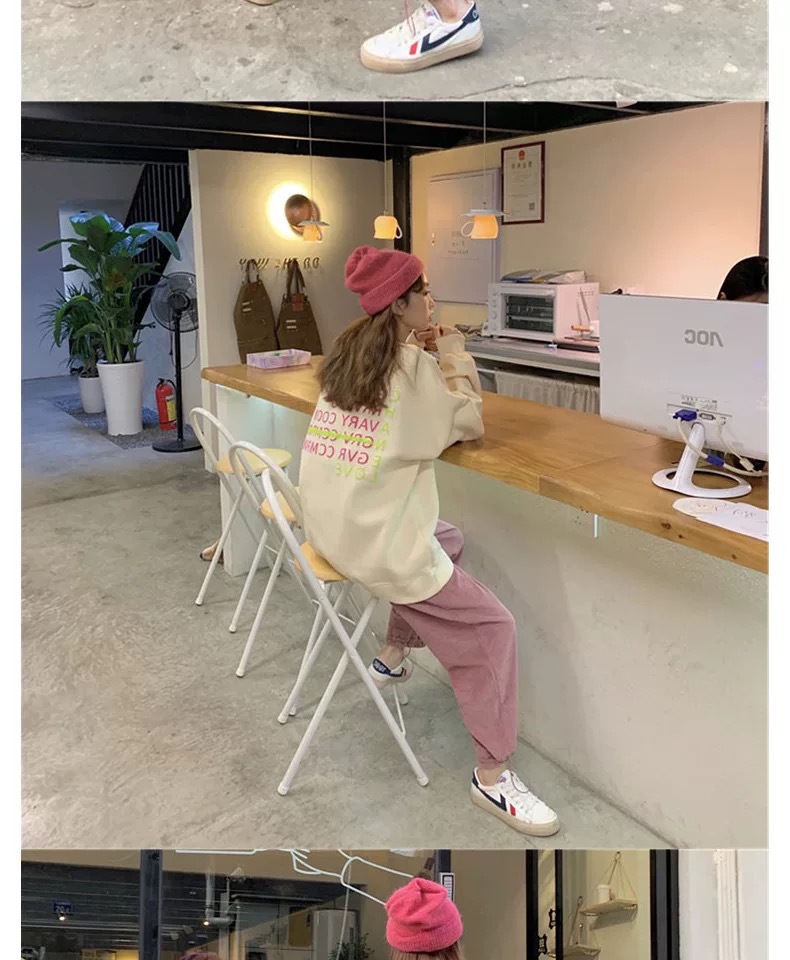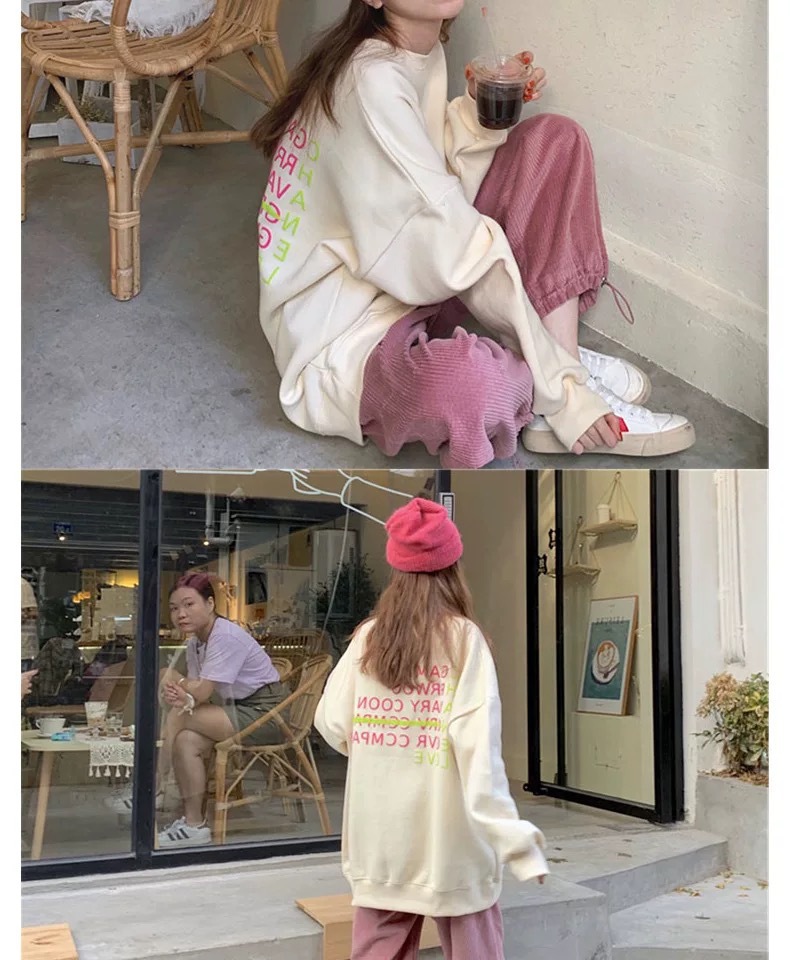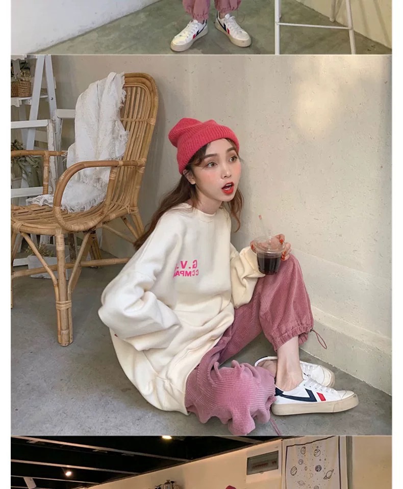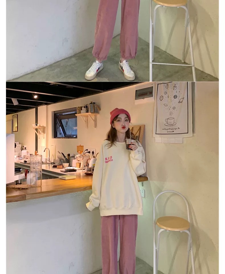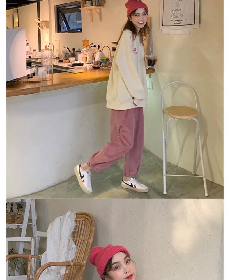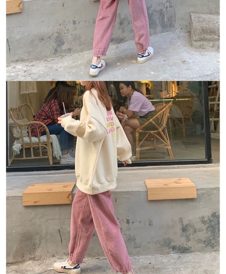 薄款燈芯絨哈倫褲女春秋新款純色高腰寬松休閑束腳運動褲學生批發
