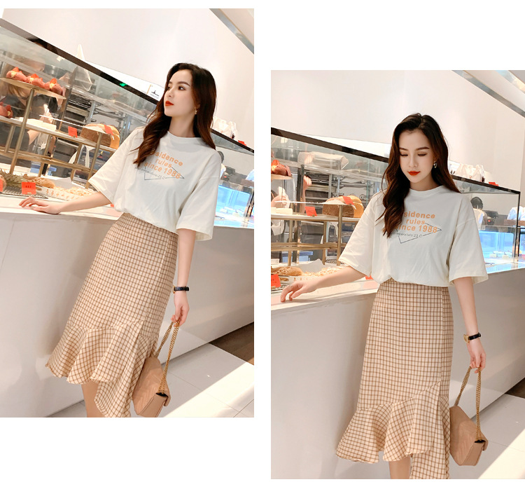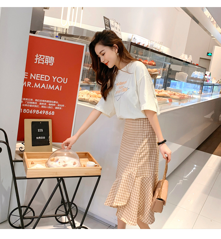 實拍2019夏女裝新款時尚兩件套裙不規則半身裙小清新套裝