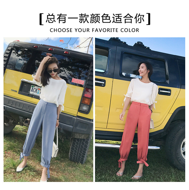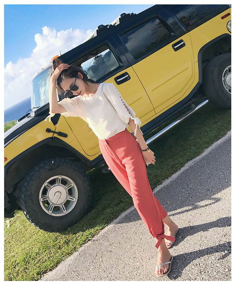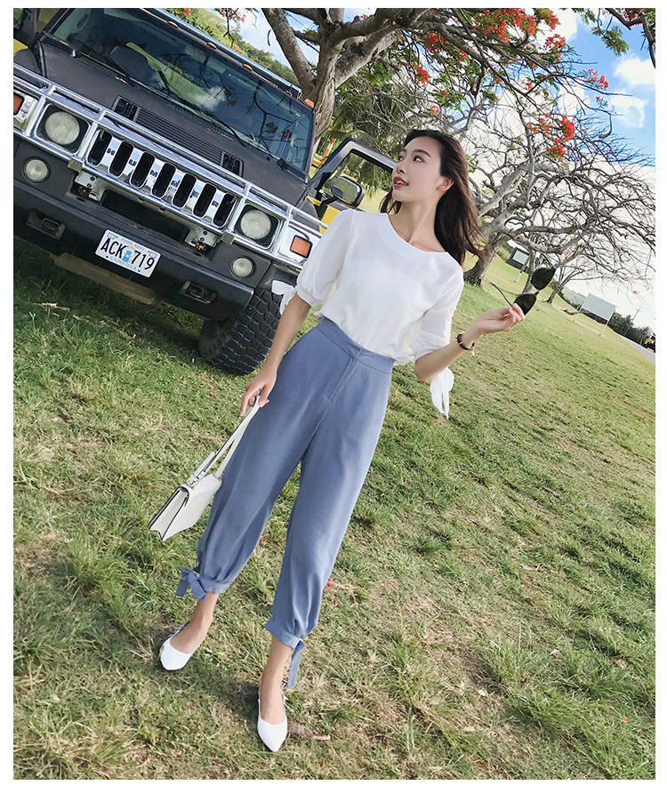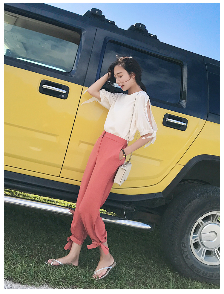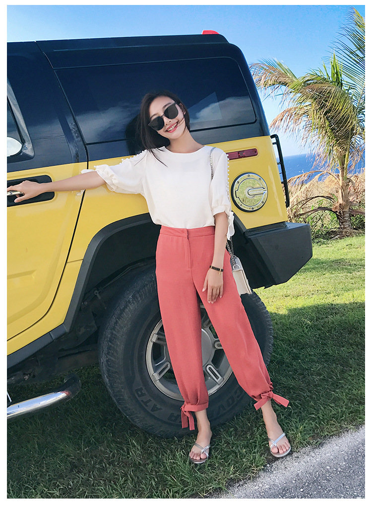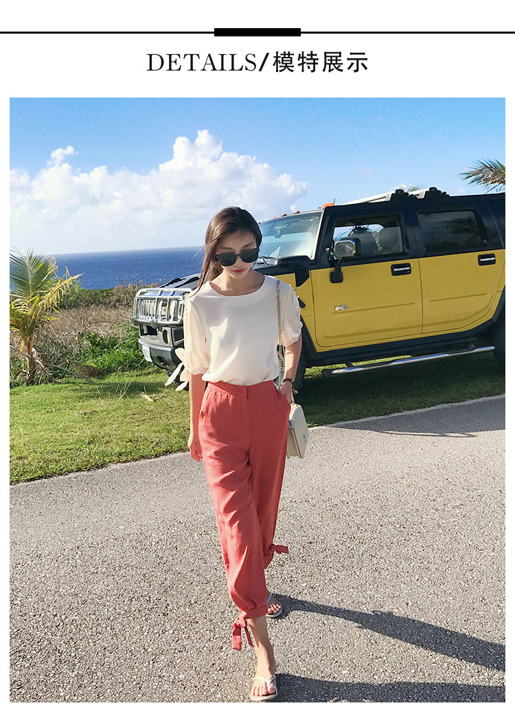 實拍2019夏季女裝新款休閑時尚九分褲搭配袖子釘珠T恤套裝