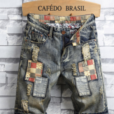 產品: 瀏覽次數:781夏季男式牛仔短褲破洞五分褲男裝寬松大碼中褲修身5分褲乞丐款