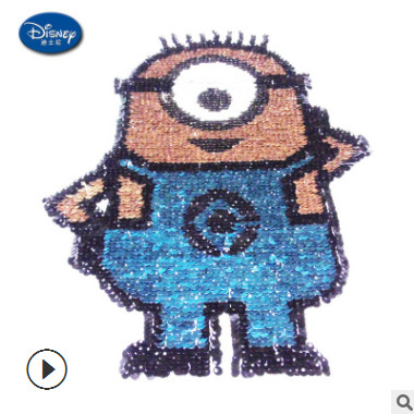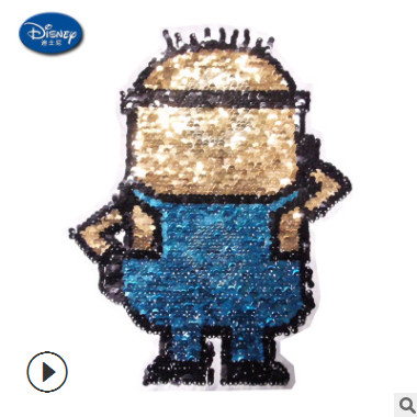 小黃人衣服珠片定制 AB片繡花布貼 電腦繡花雙面珠片 雙色片刺繡