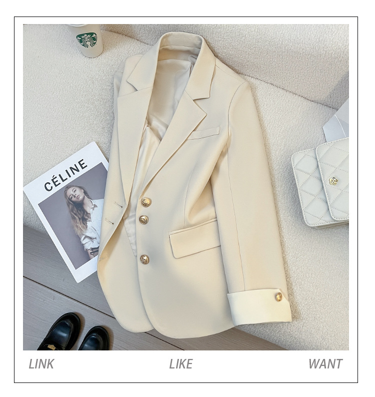 奶油色西裝外套女2025春秋新款韓版設計感小眾時尚氣質通勤小西服
