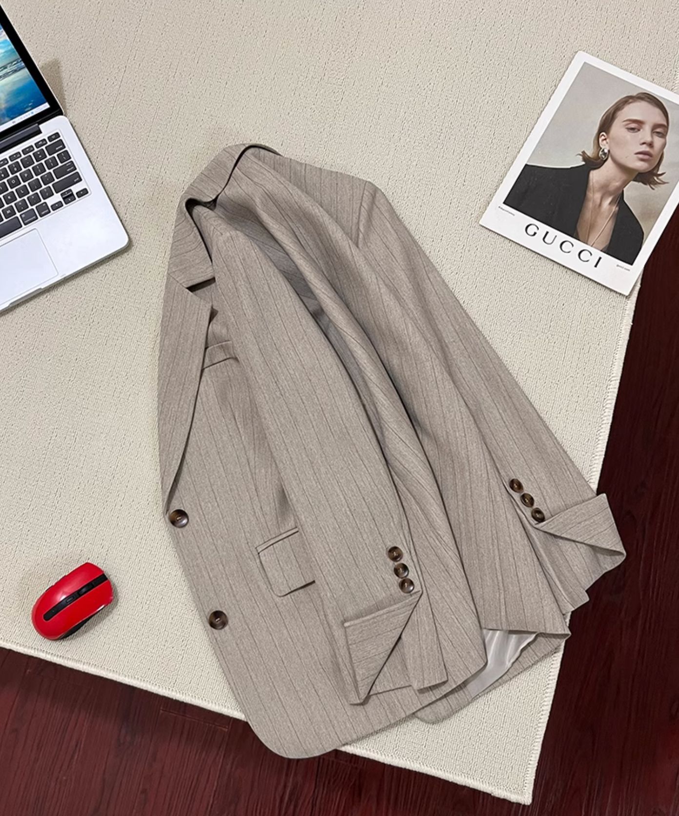 淺卡其西裝外套女2025春季新款設計感休閑簡約條紋流行女士西服