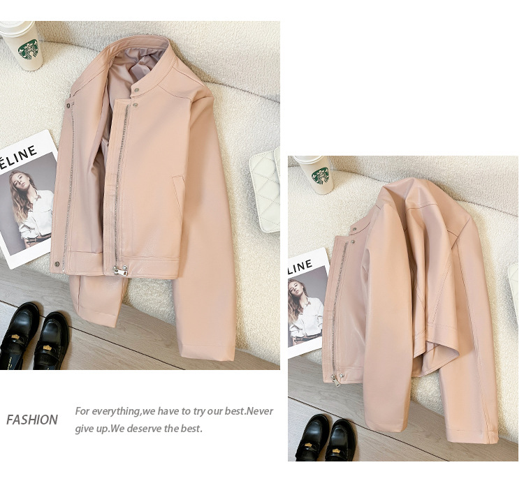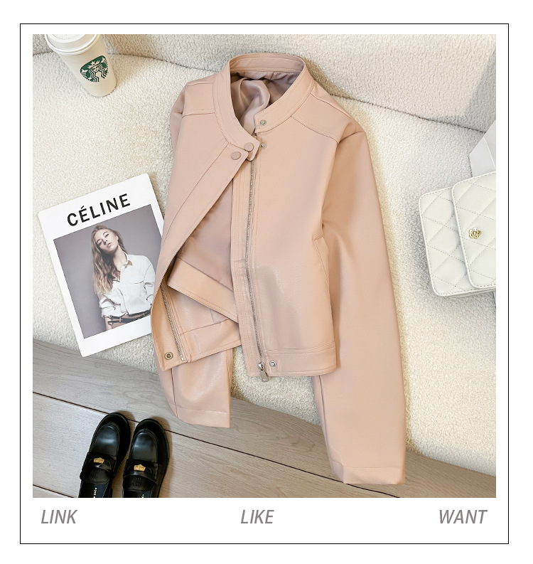 粉色百搭溫柔皮衣短外套女2025春季新款今年流行韓版網紅炸街上衣