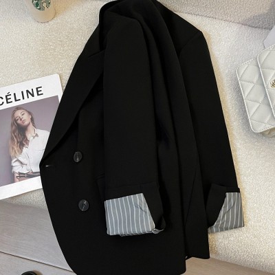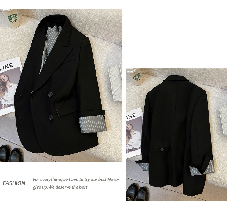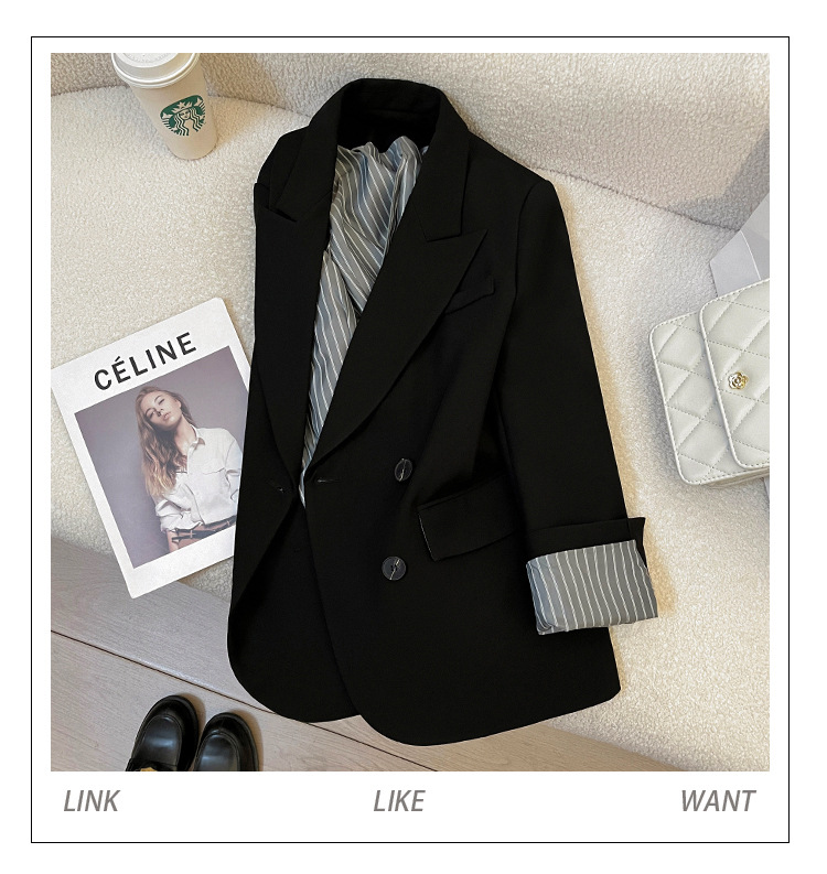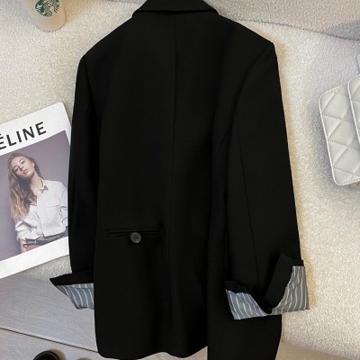 黑色條紋袖設計感西裝外套女2025春季新款小個子百搭潮流氣質西服