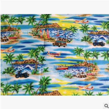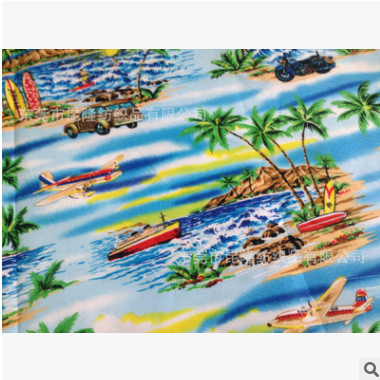 現貨梭織印花布 夏威夷椰樹花帆船印花沙灘褲熱帶雨林風格印花