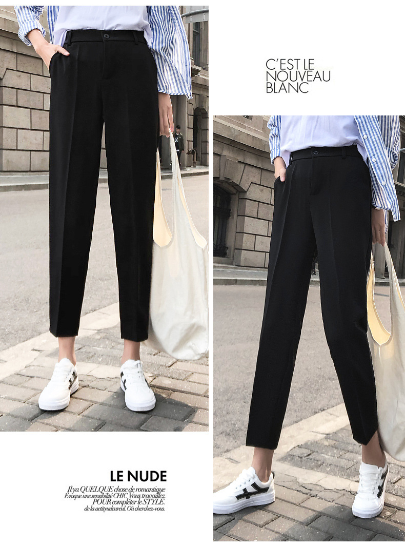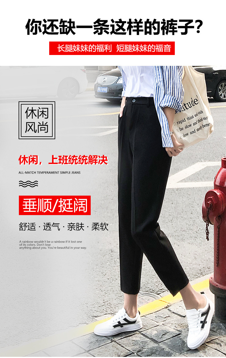 夏季西裝褲女九分直筒2020新款休閑褲女寬松黑色高腰職業煙管褲薄