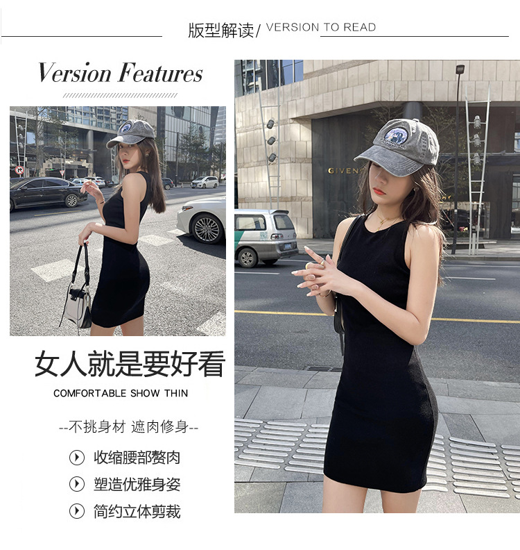 韓版時尚性感無袖針織裙修身氣質收腰包臀顯瘦中長款吊帶連衣裙