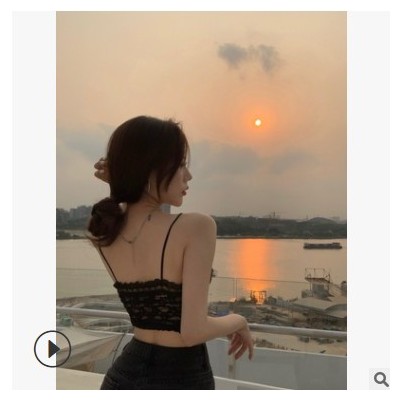 彩鉆蕾絲吊帶衫女2021夏裝新款ins網紅氣質時尚V領修身短款小背心
